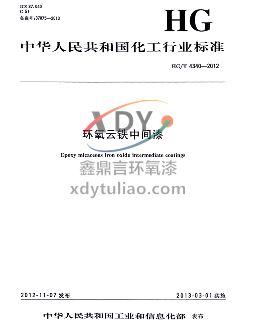 環(huán)氧云鐵中間漆化工行業(yè)標(biāo)準(zhǔn)HG/T 4340-2012