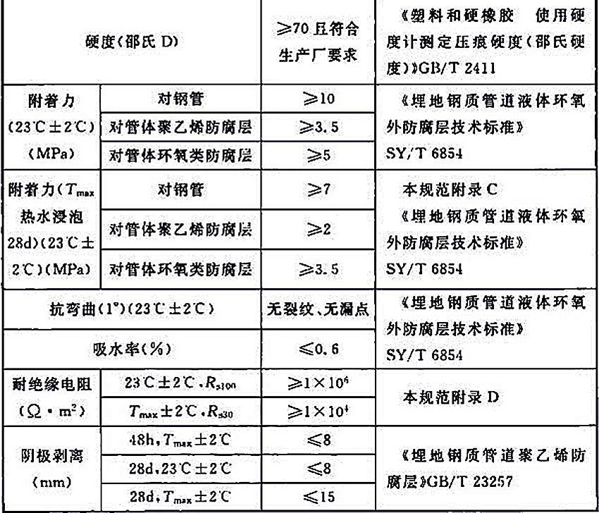 表2.2-1 液體環(huán)氧補口防腐層性能指標(2A)