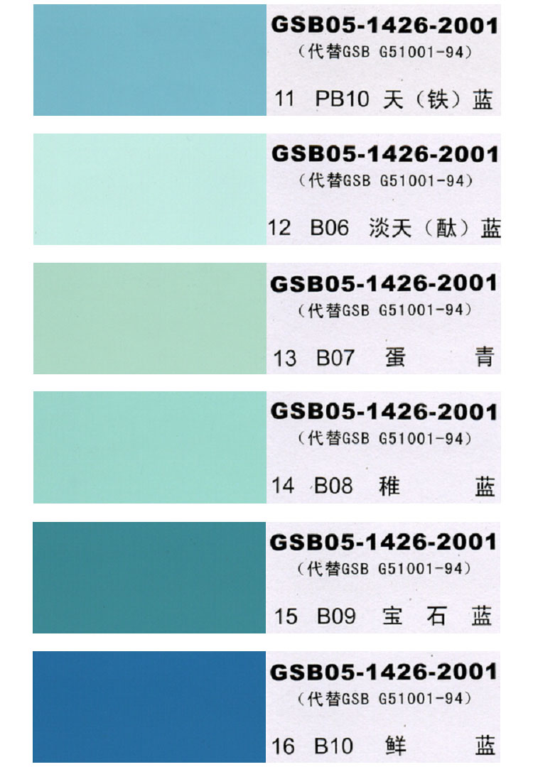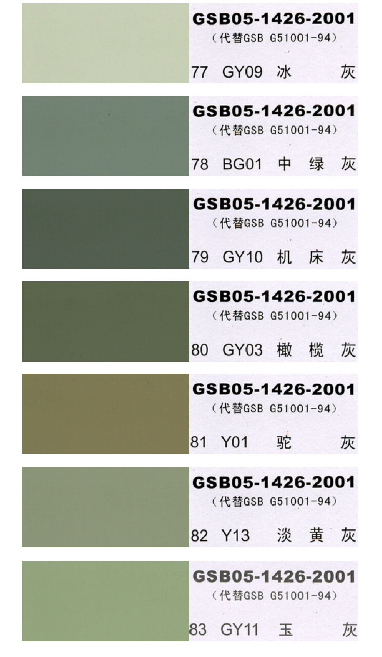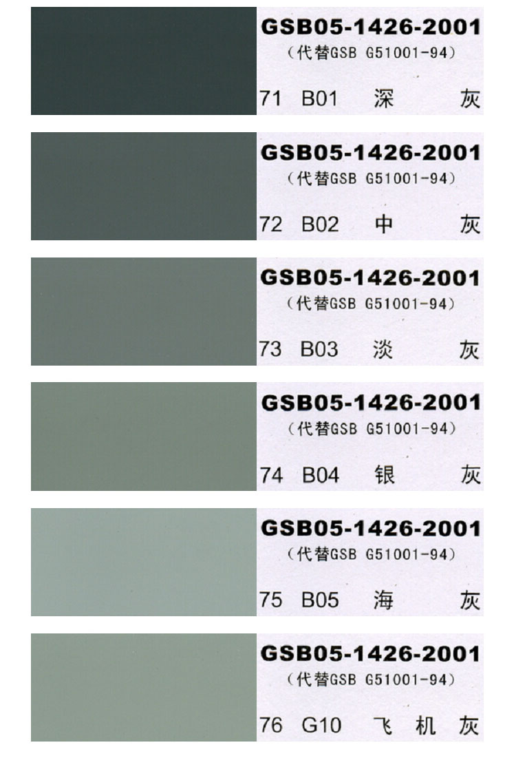 1、本國標(biāo)色卡(GSB05-1426-2001)可能會因顯示器的問題,給出的顏色色相與實際防腐漆色相比可能會有差異,請客戶理解!